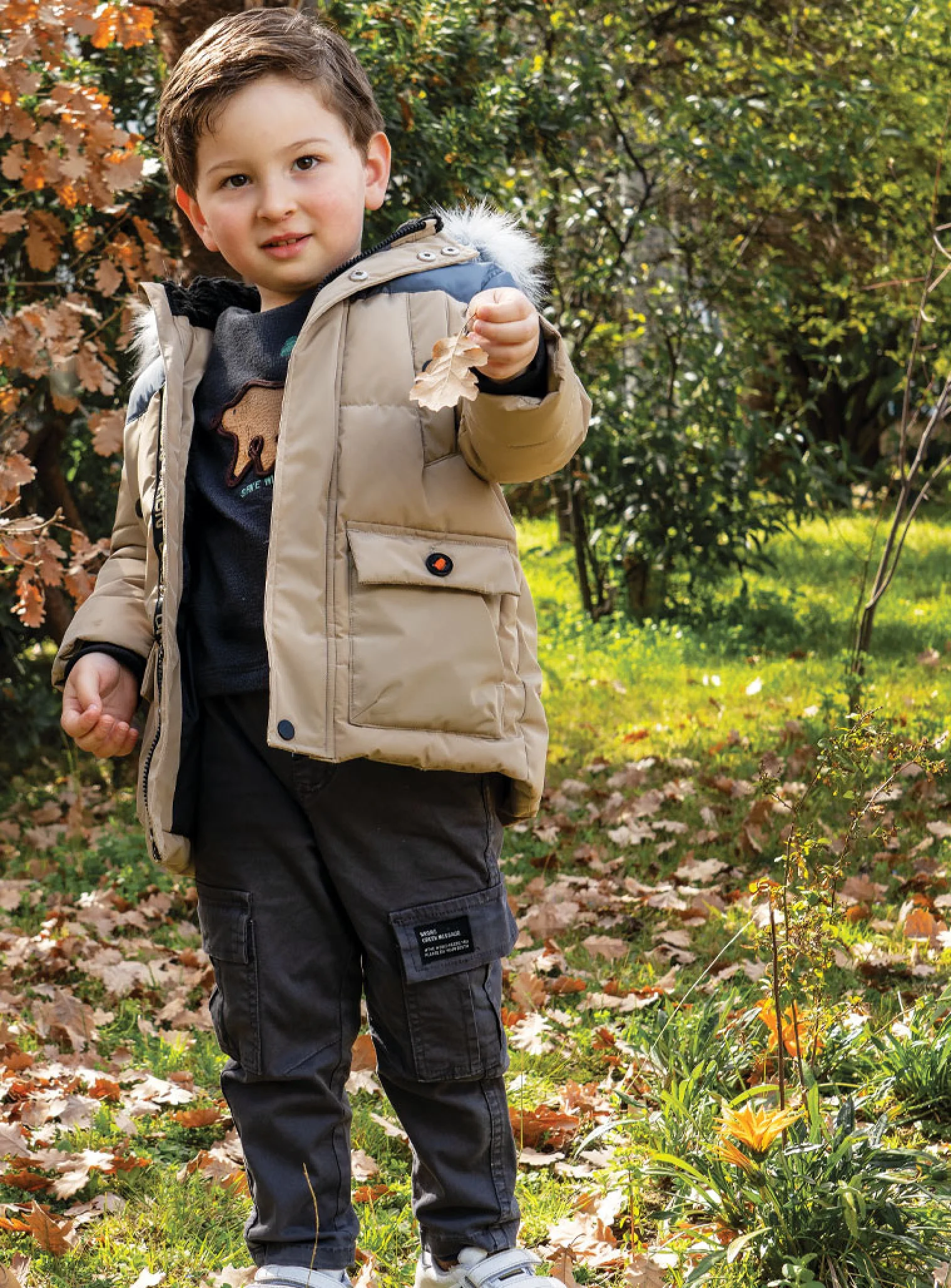 Παντελόνι cargo με λάσστιχο στην μέση για αγόρι. 98%ΒΑΜΒΑΚΙ-2%ΕΛΑΣΤΑΝ