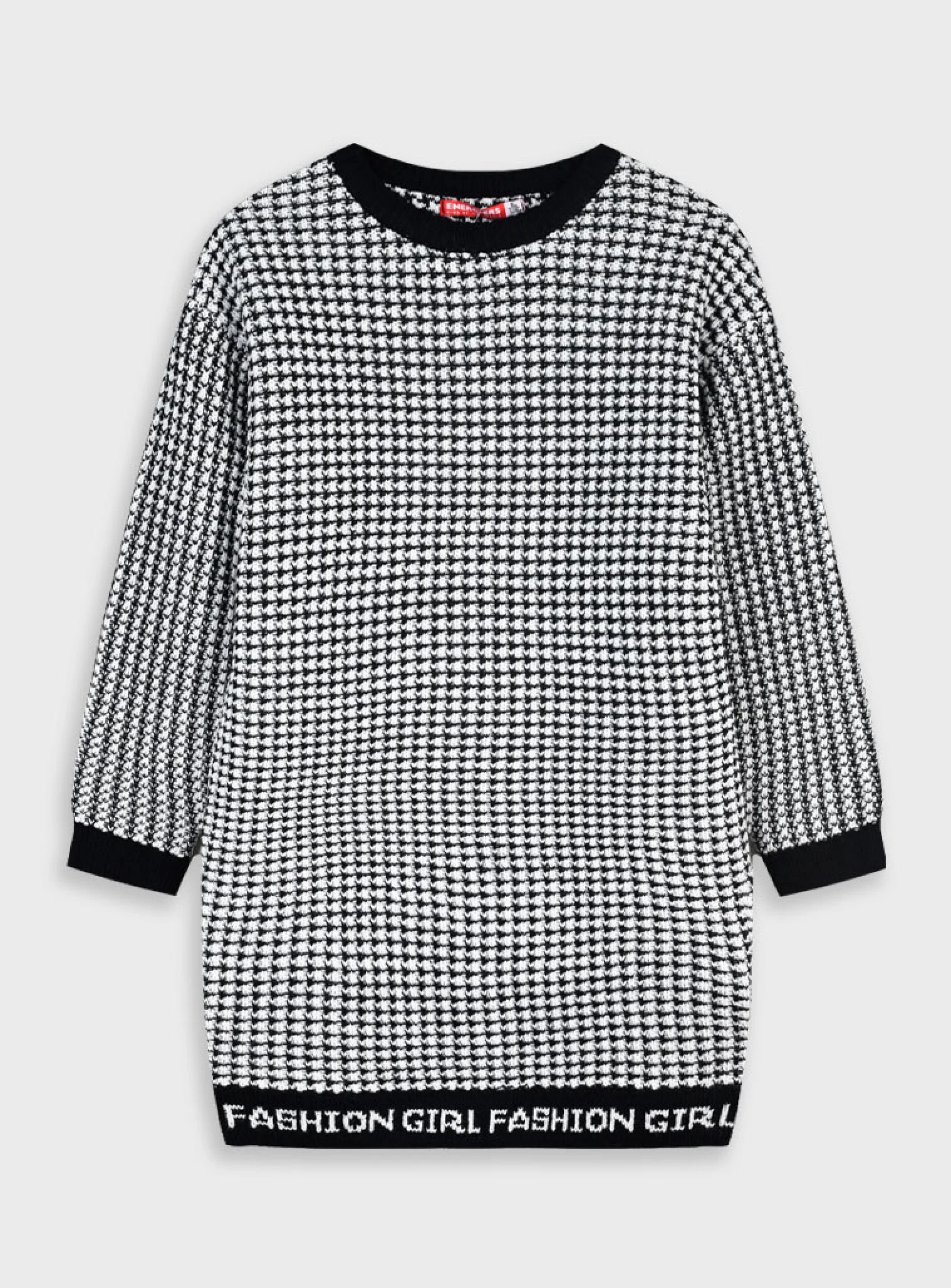 Πιε ντε πουλ πλεκτό φόρεμα για κορίτσι. 95%ΑΚΡΥΛΙΚΟ-5%ΜΕΤΑΛΛΙΚΕΣ ΙΝΕΣ