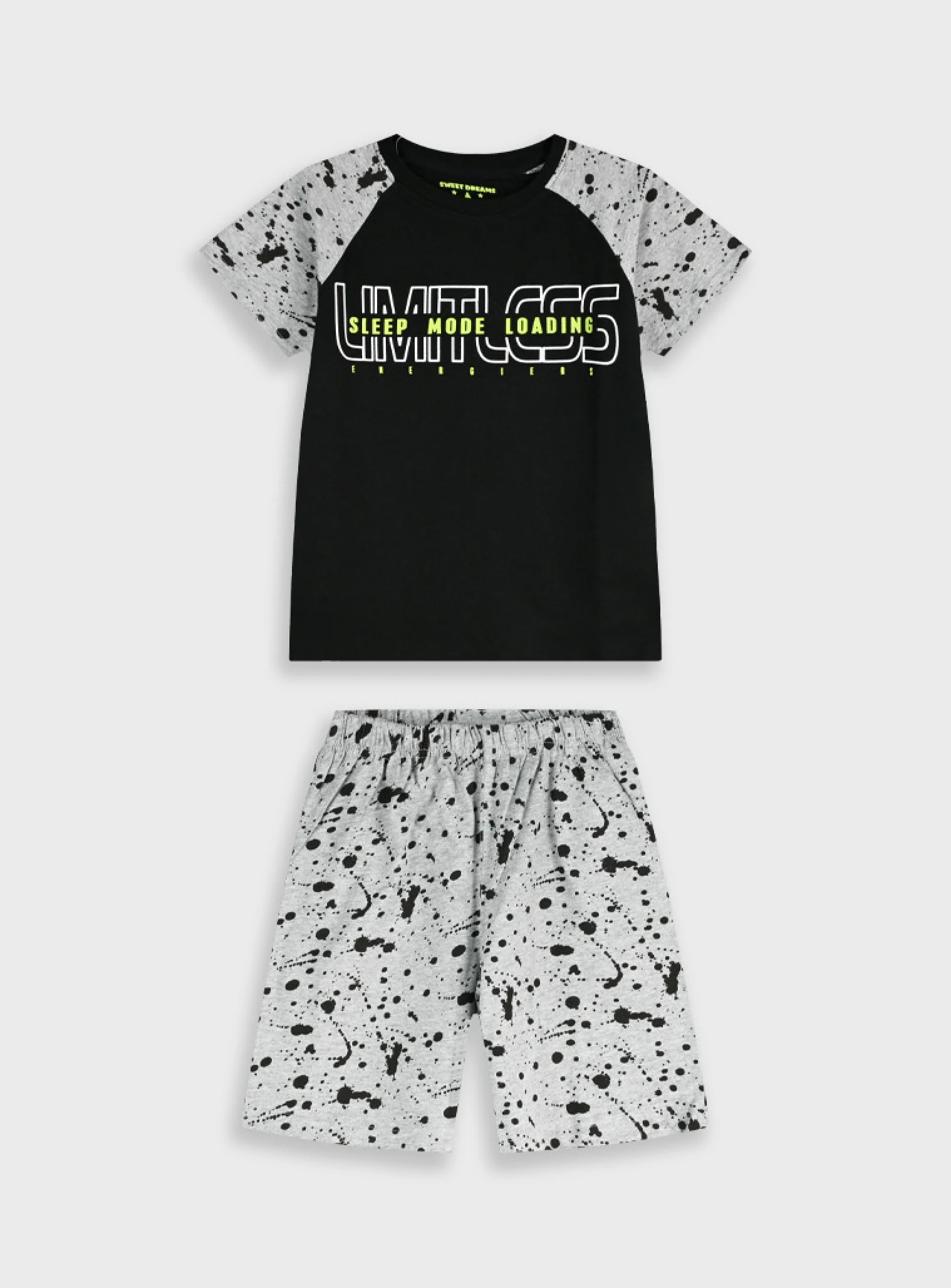 Σετ πυζάμα με κοντομάνικη μπλούζα με τύπωμα και εμπριμέ σορτς για αγόρι 100% ΒΑΜΒΑΚΙ