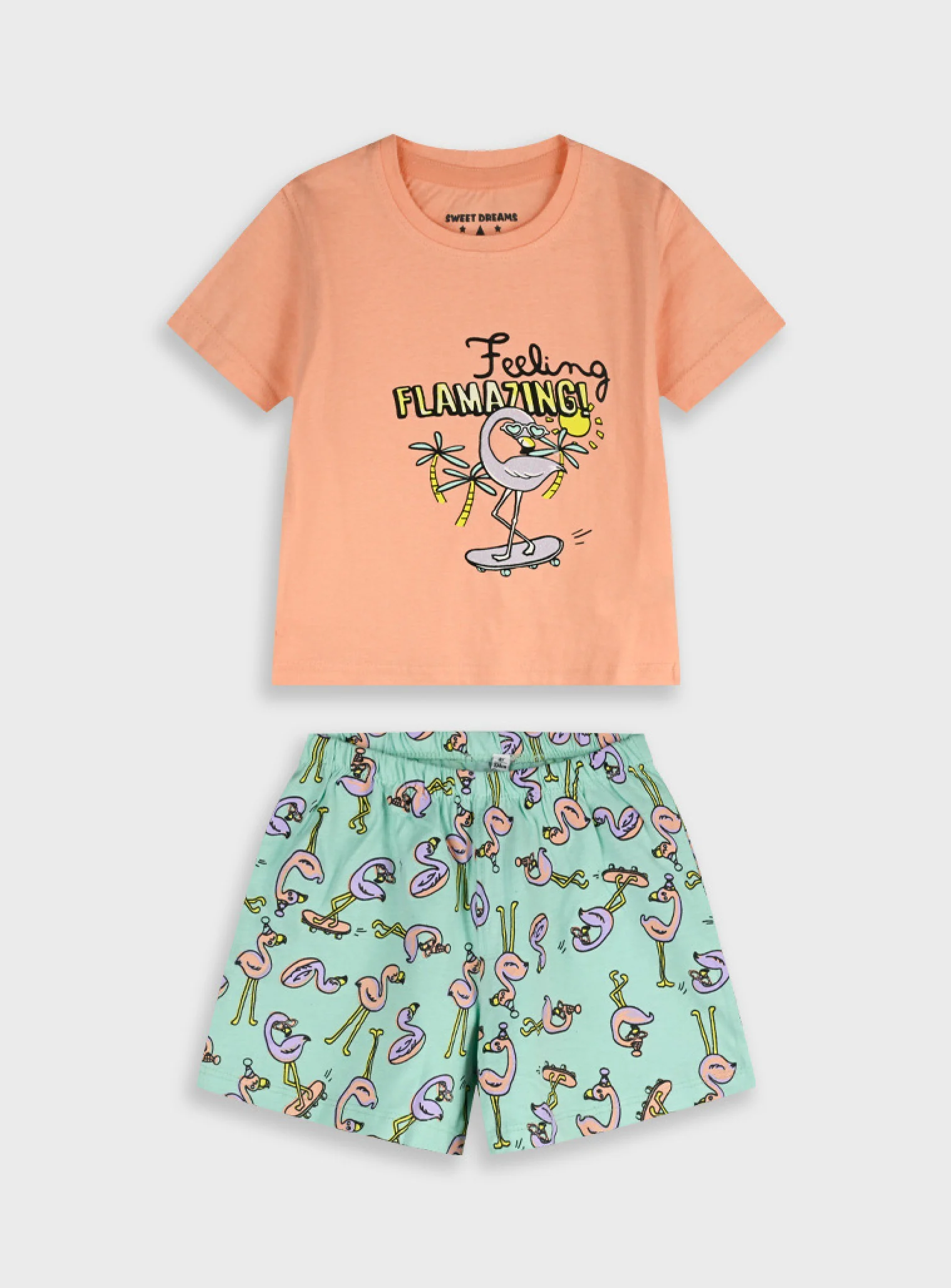 Σετ πυζάμα με κοντομάνικη μπλούζα με τύπωμα και τυπωμένο σορτς για κορίτσι