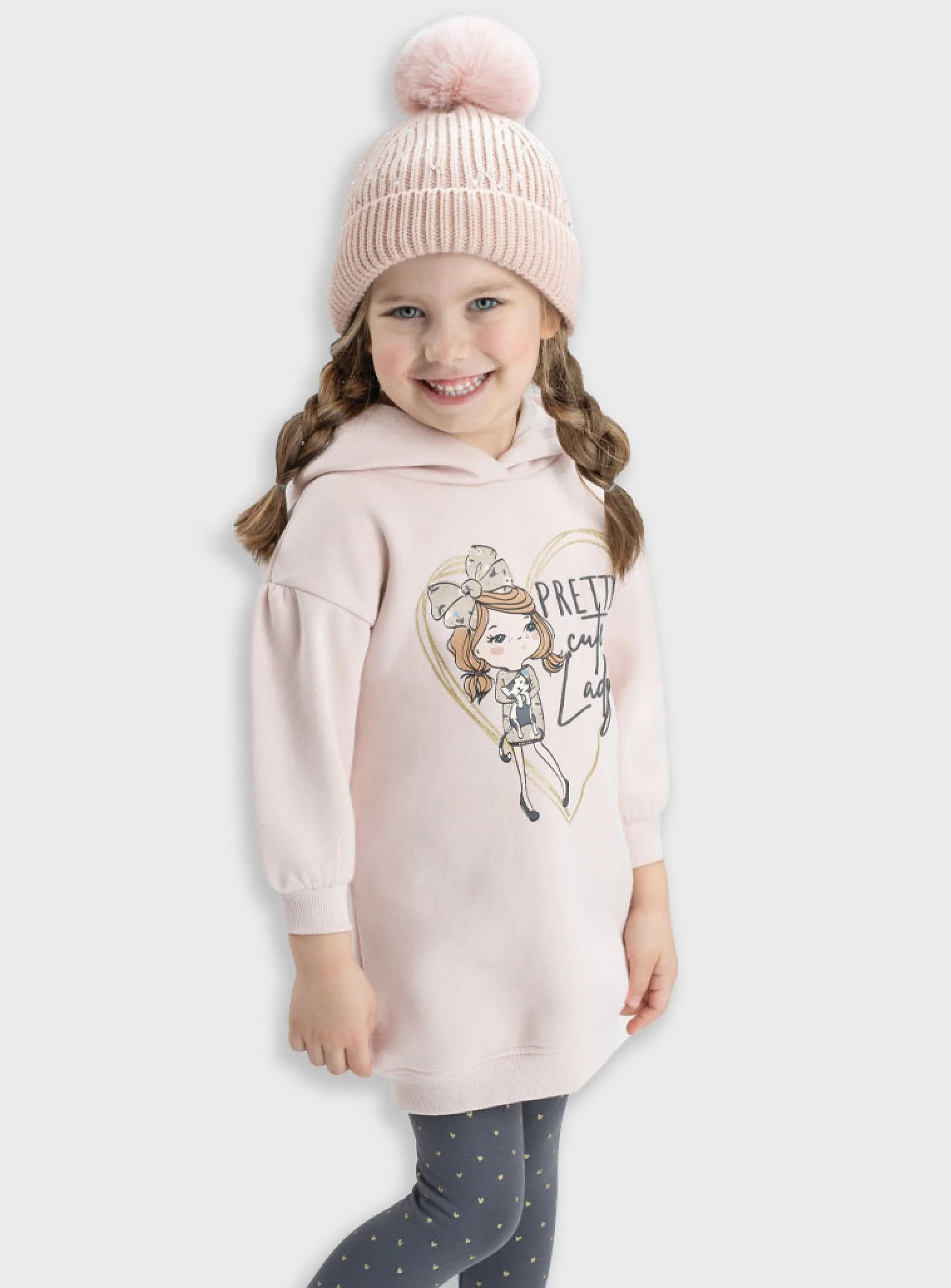 Σετ φούτερ μπλούζα με κουκούλα και πουά κολάν για κορίτσι ΜΠΛΟΥΖΑ 100%ΒΑΜΒ+ΚΟΛΑΝ 95%ΒΑΜΒ-5%ΕΛΑΣΤΑΝ