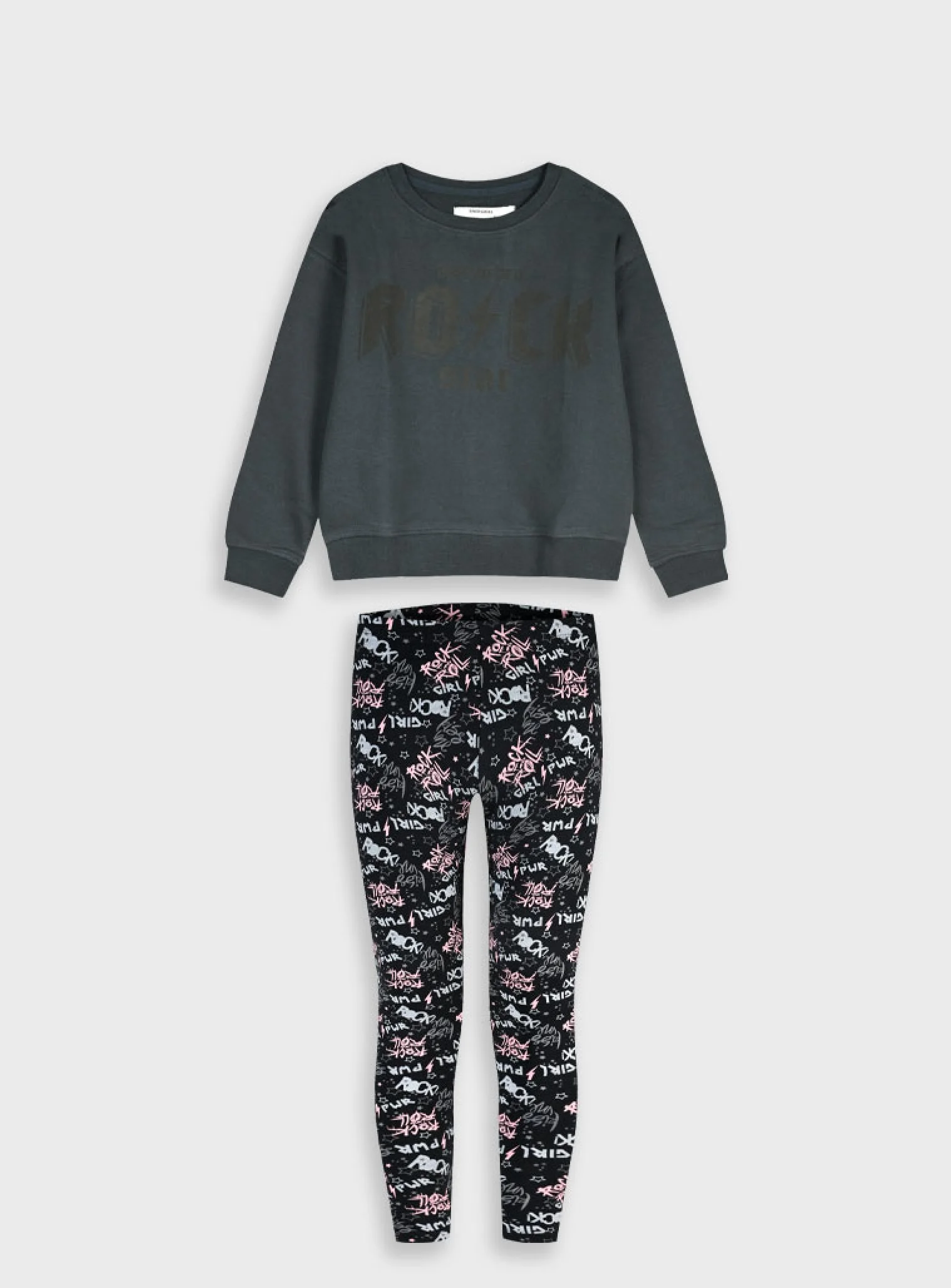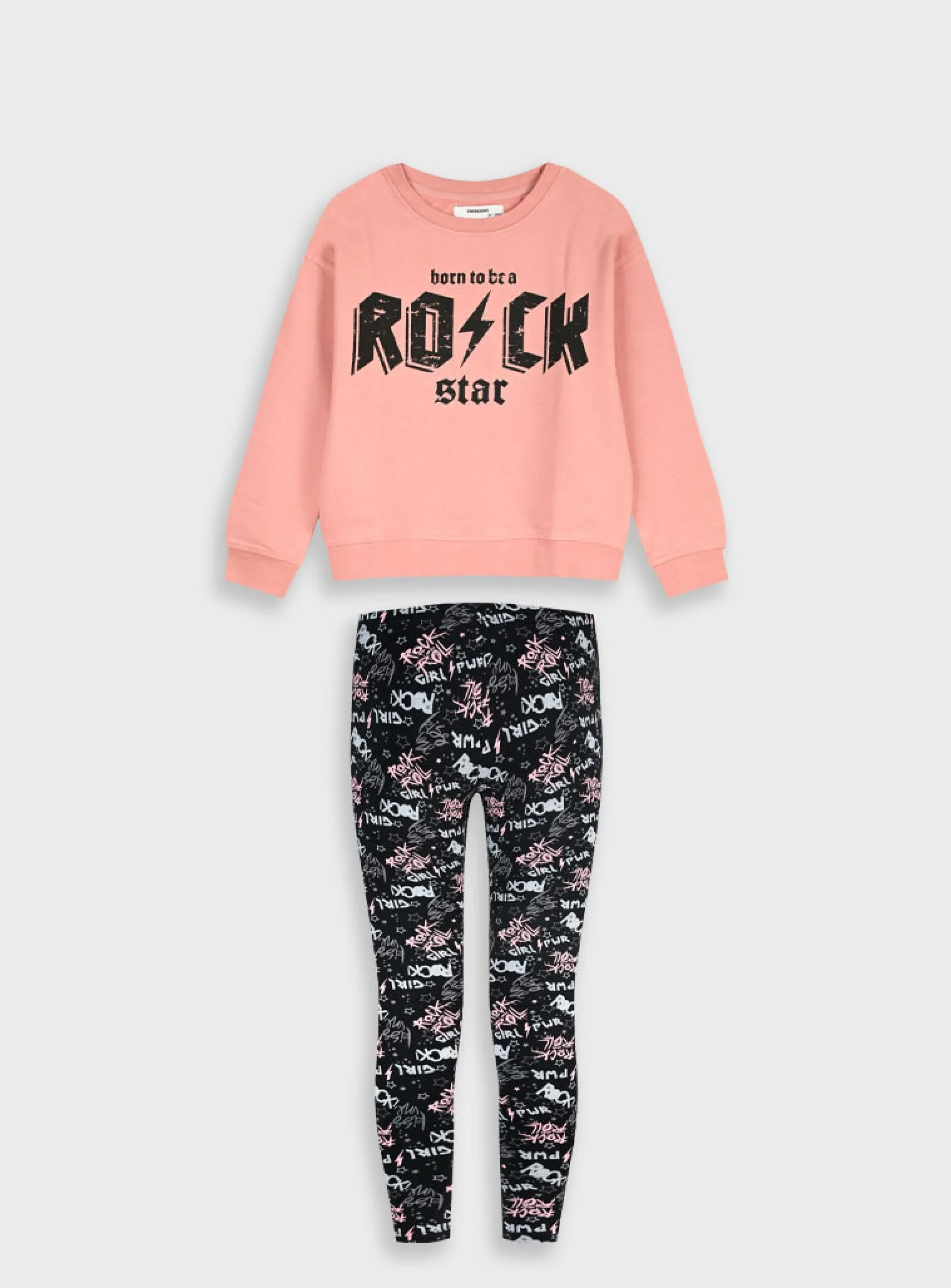 Σετ φούτερ μπλούζα με τύπωμα και κολάν για κορίτσι ΜΠΛΟΥΖΑ 100%ΒΑΜΒΑΚΙ+ΚΟΛΑΝ 95%ΒΑΜΒΑΚΙ-5%ΕΛΑΣΤΑΝ