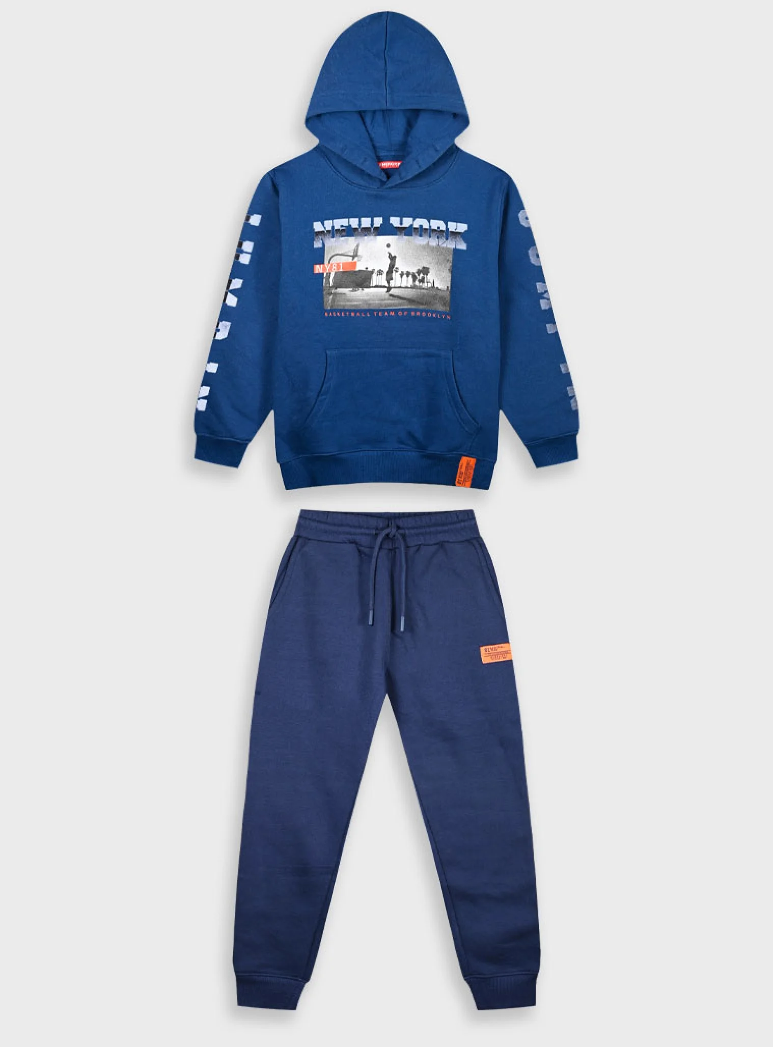 Φούτερ φόρμα 2 τεμαχίων με κουκόυλα και τύπωμα για αγόρι 85%ΒΑΜΒΑΚΙ-15%ΠΟΛΥΕΣΤΕΡ