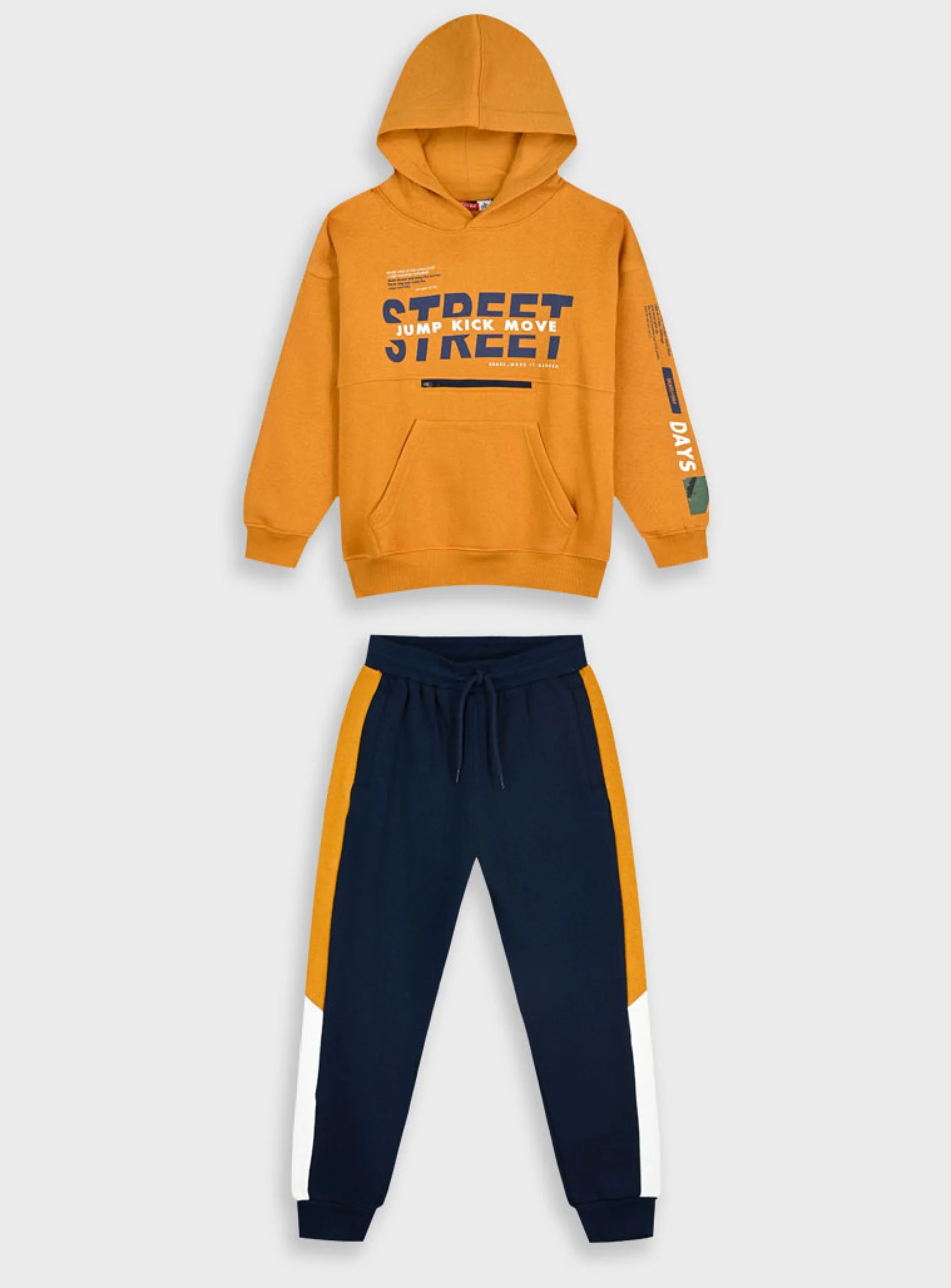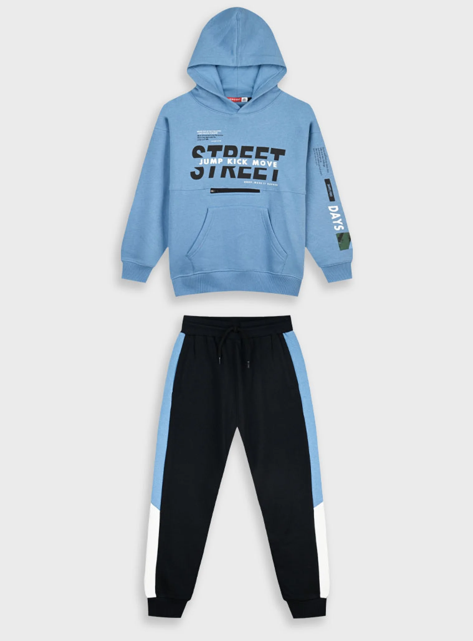 Φούτερ φόρμα 2 τεμαχίων με κουκόυλα και τύπωμα για αγόρι 85%ΒΑΜΒΑΚΙ-15%ΠΟΛΥΕΣΤΕΡ