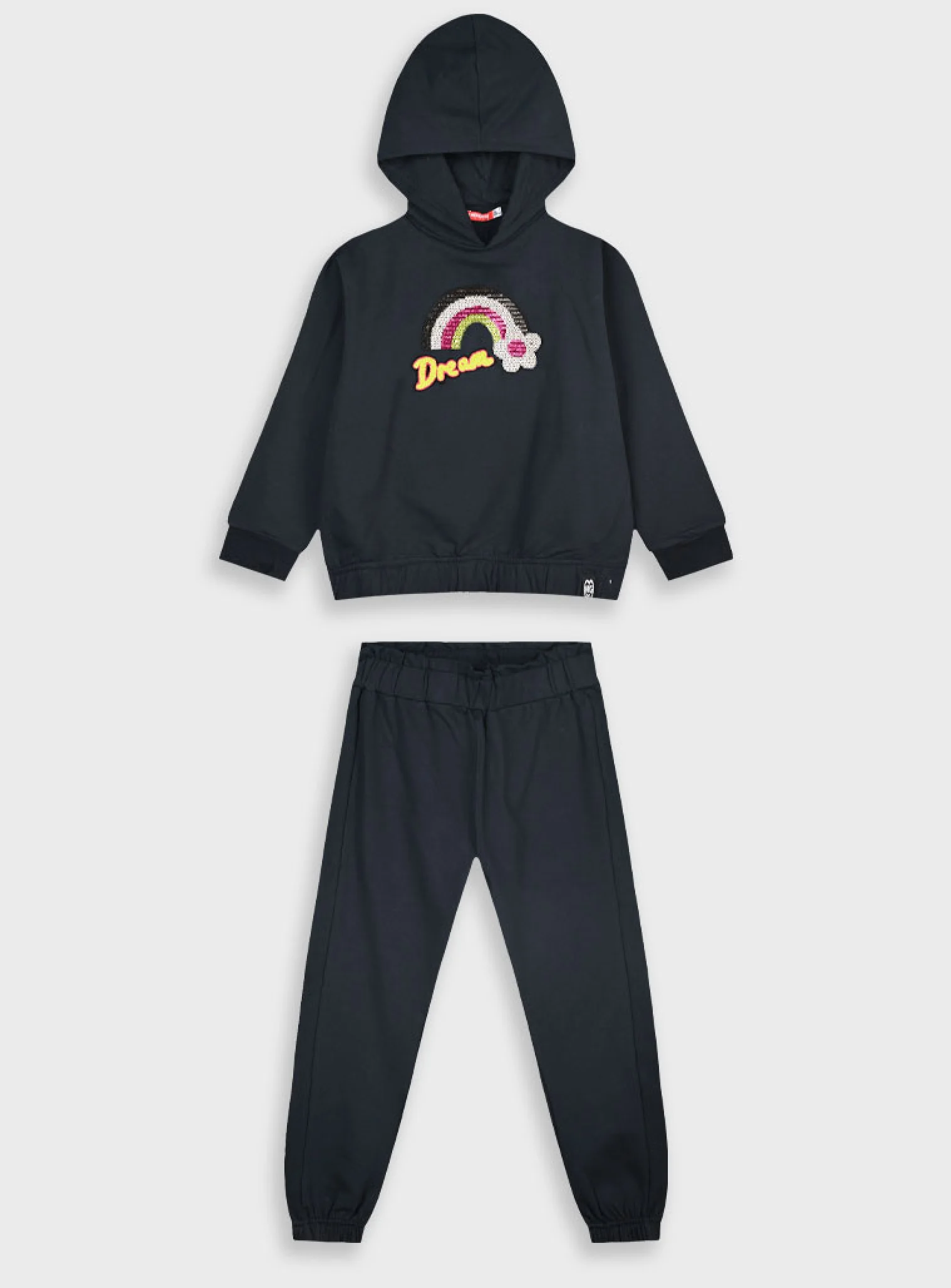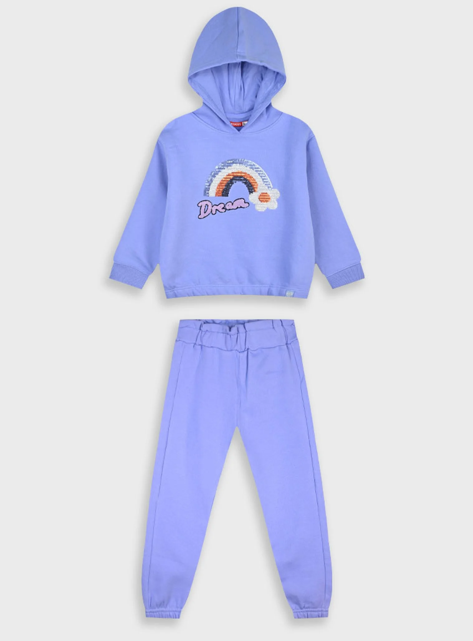 Φούτερ φόρμα 2 τεμαχίων με κουκόυλα και τύπωμα για κορίτσι.