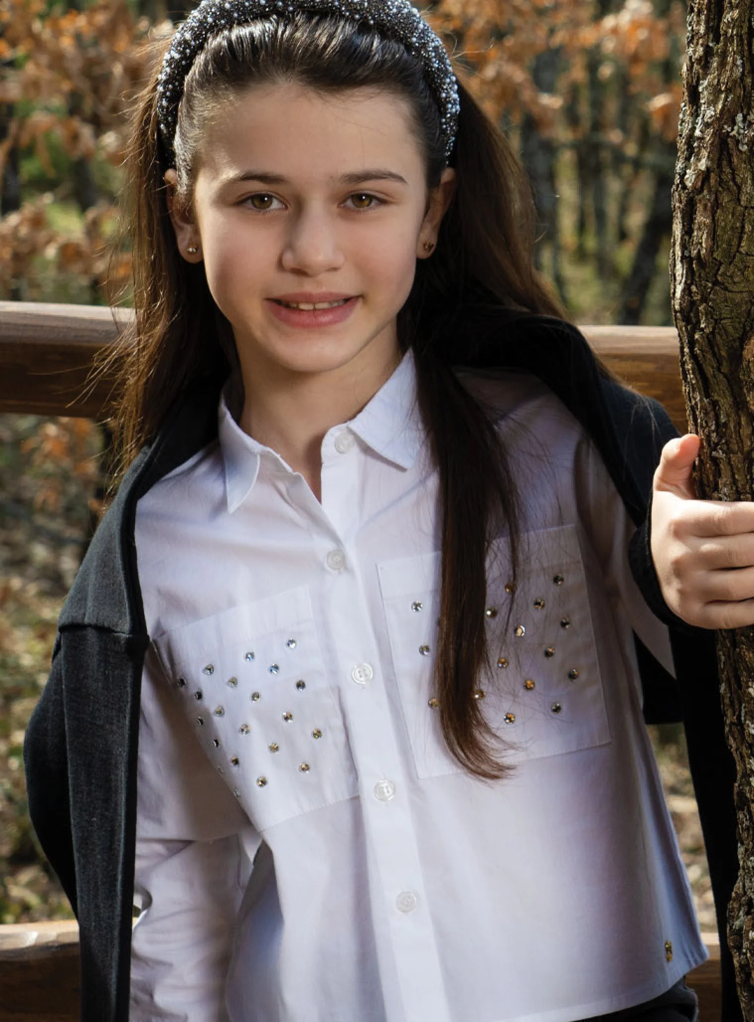 Boutique πουκάμισο με στρας για κορίτσι 97%ΒΑΜΒΑΚΙ-3%ΕΛΑΣΤΑΝ